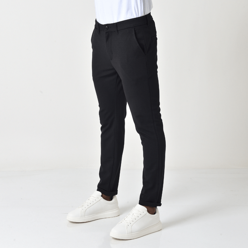 Com fechamento por botão, esta calça se adapta perfeitamente ao seu corpo. Os bolsos-faca frontais e os dois bolsos traseiros adicionam um toque refinado, garantindo a praticidade que você precisa para carregar seus itens essenciais com segurança. É a escolha perfeita para o trabalho, eventos sociais ou um passeio casual.