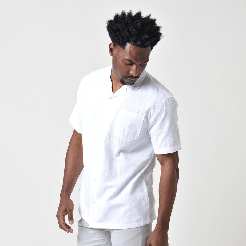 Confeccionada com um blend de 60% Poliéster e 40% Algodão, a camisa oferece a durabilidade do poliéster com o toque macio e a respirabilidade do algodão. O design possui Mangas Curtas e Gola em V com Fechamento em Botões, conferindo um estilo casual e sofisticado.