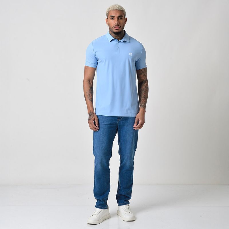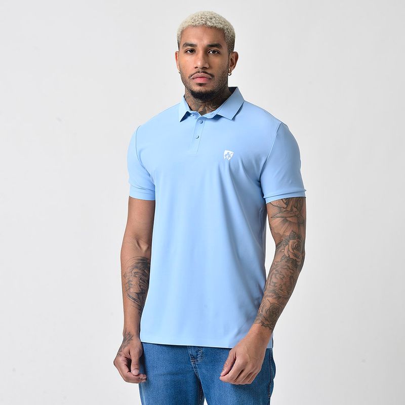 Dica: Combine esta polo Azul Claro com uma calça de sarja escura (marinho ou preta) e um sapatênis para um visual casual-chique e alinhado. Para um look mais esportivo, use-a com uma bermuda de tactel ou moletom e um tênis de corrida. O tecido de poliamida com elastano é ótimo para mantê-lo seco e confortável.