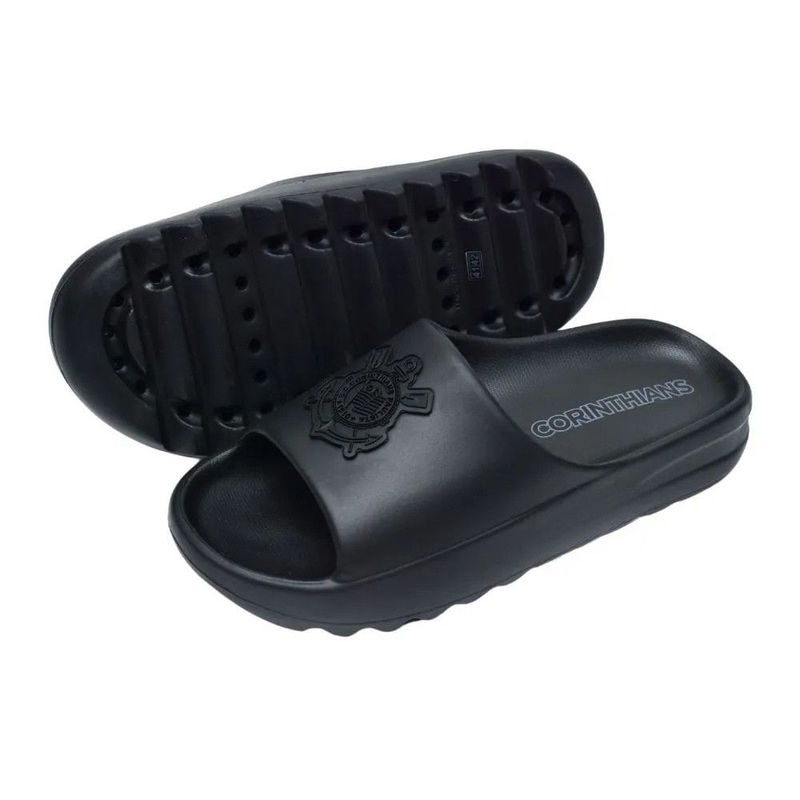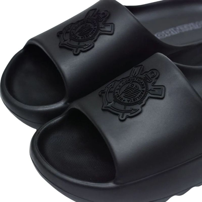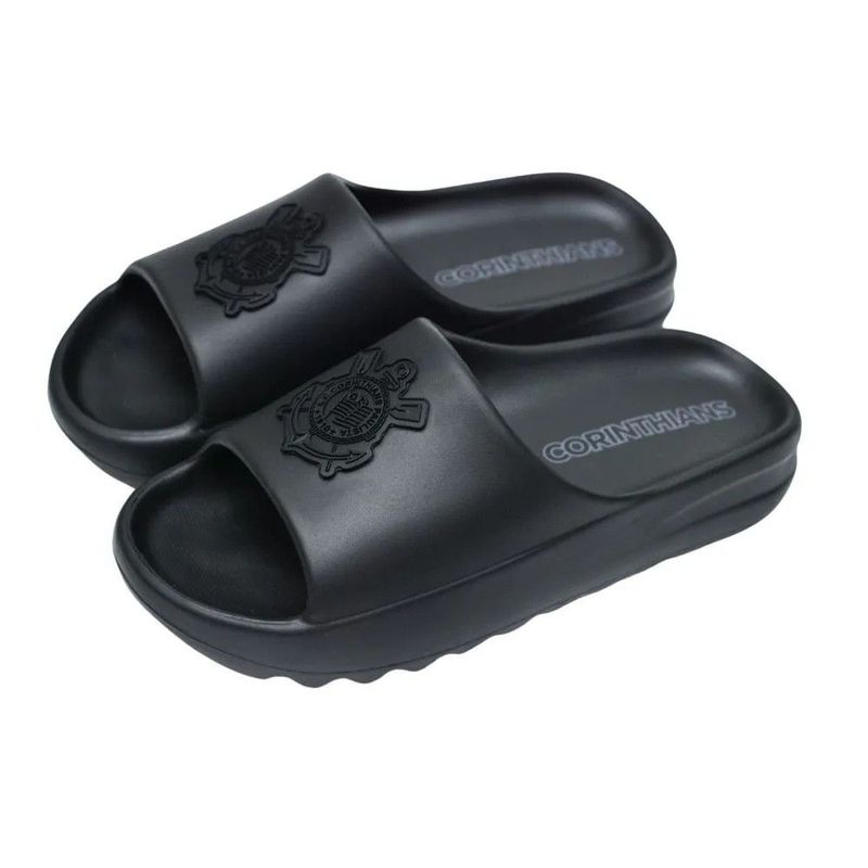 O Chinelo Nuvem Corinthians Slide All Black é a escolha perfeita para quem quer representar o Timão com atitude e elegância. Com design totalmente preto e escudo em destaque, ele transmite personalidade e paixão por onde você passar.