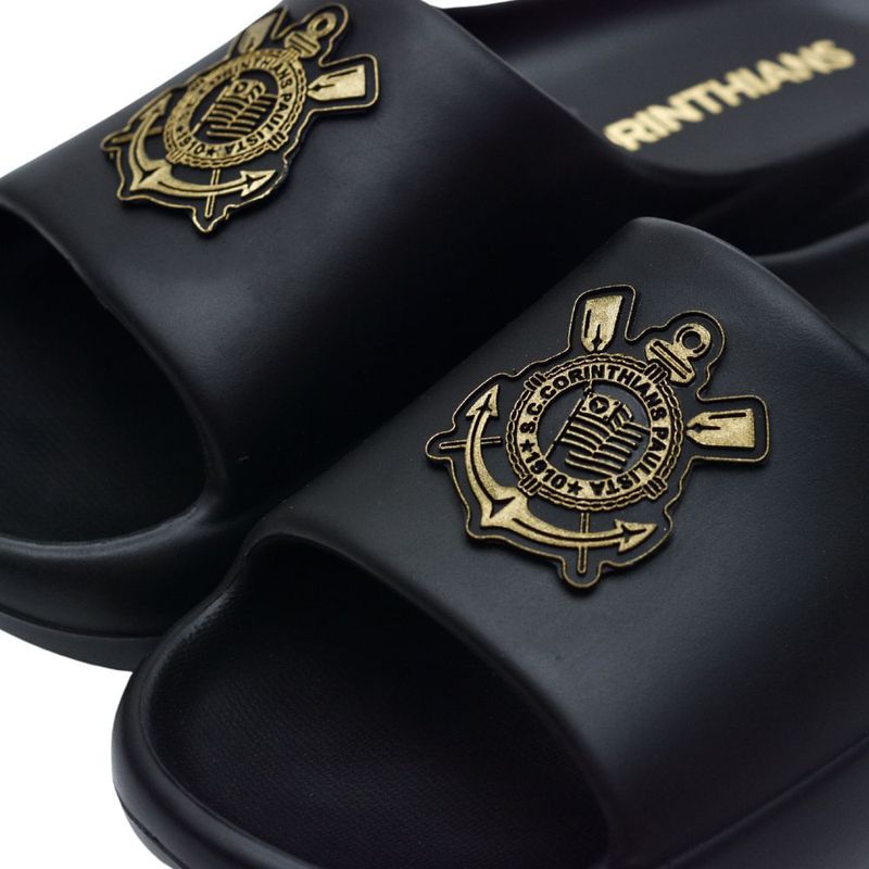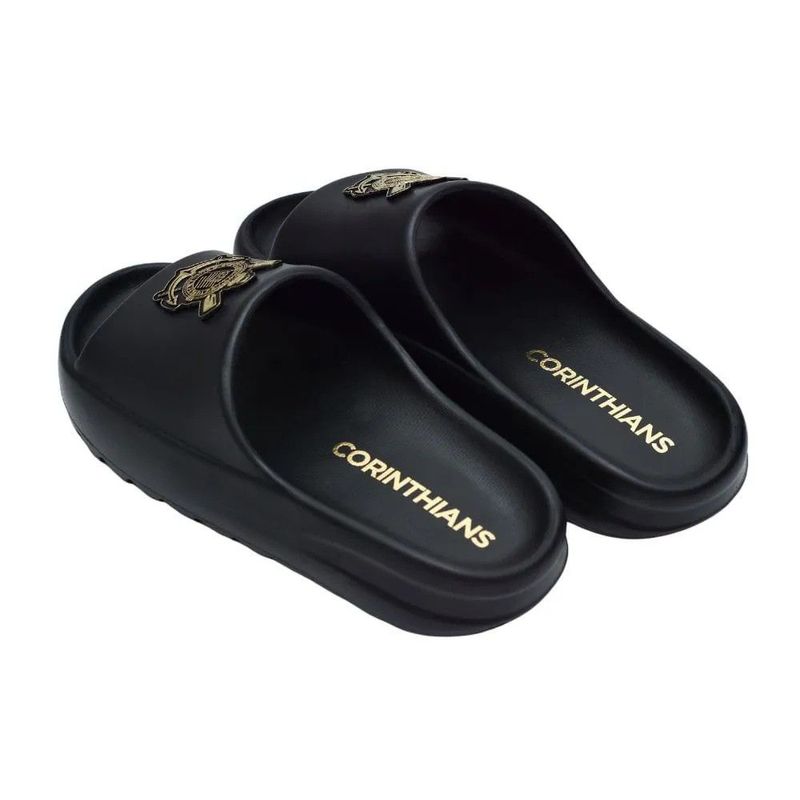 O Chinelo Nuvem Corinthians Slide Oficial Licenciado na cor preta combina conforto extremo com o orgulho de vestir as cores do clube. Ideal para relaxar em casa, curtir o pré-jogo ou compor um visual esportivo com personalidade.