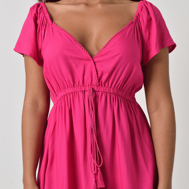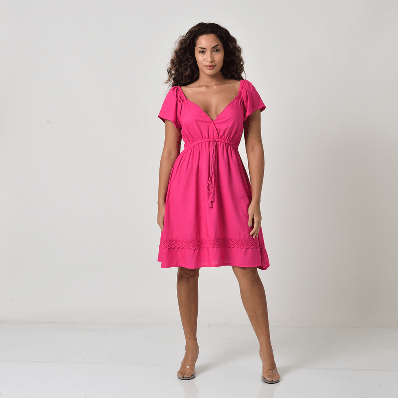 Na Cor Rosa, o vestido é moderno e cheio de vida. Confeccionado em 100% de Viscose, ele garante um caimento fluido e leve, com um toque macio. O diferencial reside nos Detalhes de Ombros Caídos (off-shoulder), que acrescentam um toque sensual e elegante ao Comprimento Midi. Para maior conforto e melhor caimento, a peça conta com forro 100% poliéster.